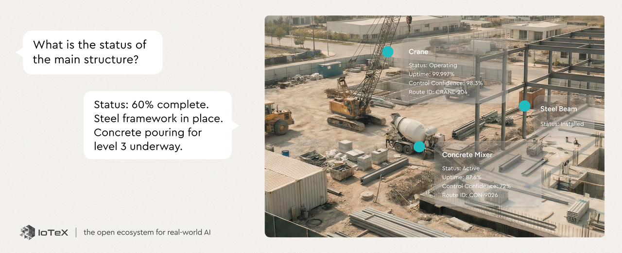 This matters because AI agents are moving from answering questions to taking actions — booking, buying, routing, managing. An AI that can't perceive the physical world can only operate in half of reality. Our goal: make IoTeX the protocol through which AI sees, verifies, and acts on the physical world.